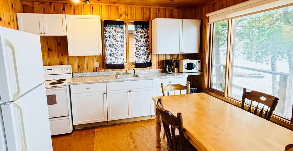 Each of our cabins has a fully-equipped kitchen (everything but the food) including full-sized appliances, microwave, coffee maker, crockpot, utensils, and cook/bakeware. Each cabin has a charcoal grill and propane fish cooker. All bedding is provided. We also provide kitchen towels/potholders and a bathroom hand towel. We do ask that you bring your own bath towels/dish soap/charcoal etc.