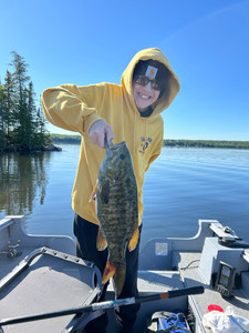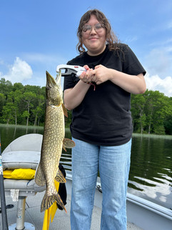 Temps have tapered off- air temps in the 70's and water temps in the upper 60's. The cool evening air makes for great sleeping weather, but some low wind days haven't pushed fish into shore-lines like we'd like to see. Pike fishing has been outstanding these last few weeks. Smallie action has been consistent, and numerous guests have been getting their perch limit. As you'll see, those targeting lake trout with the proper gear have been rewarded as well. Walleye are still being moody, and it takes some work to get them to bite. There's a lot of bait fish around to compete with we we're hoping that bite picks up a little.