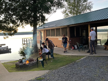 We had numerous friends and family join us this past week. We were able to hire local artist Helen to do an art workshop on site, did some shorelunch, and even had a camp wiffleball game: